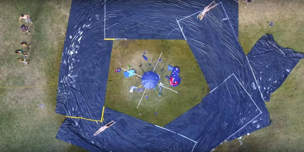 Untuk merayakan Australia Day yang jatuh pada Januari kemarin, beberapa orang yang merayakannya membuat suatu permainan yang sungguh sangat menarik. Permainan ini sebenarnya sejenis dengan slip and slide, cuma yang membedakan hanyalah medan yang dipakai.
