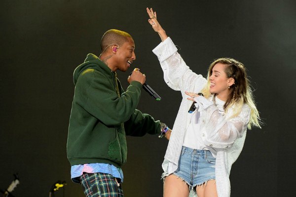 Menceriakan suasana, Pharell Williams berduet dengan Miley Cyrus menyanyikan hits single “Happy”. Ia pun sempat berbicara pada penonton yang hadir di sana,